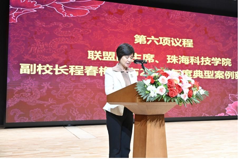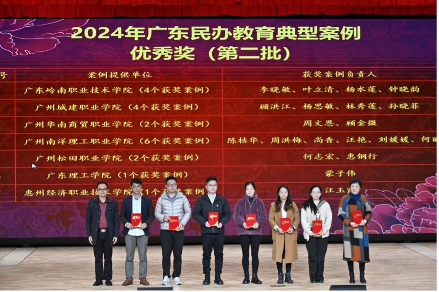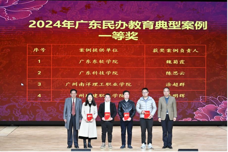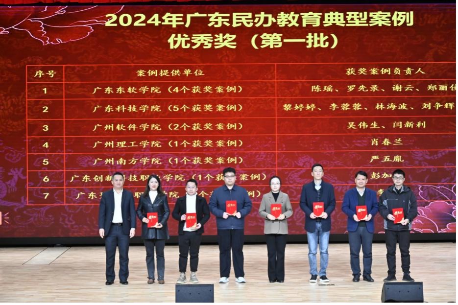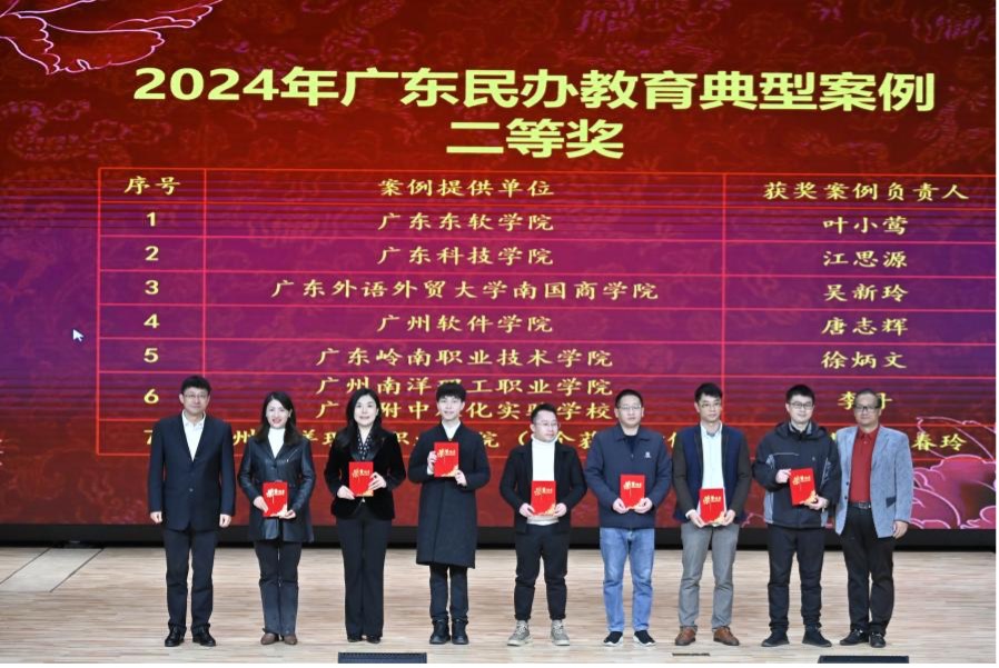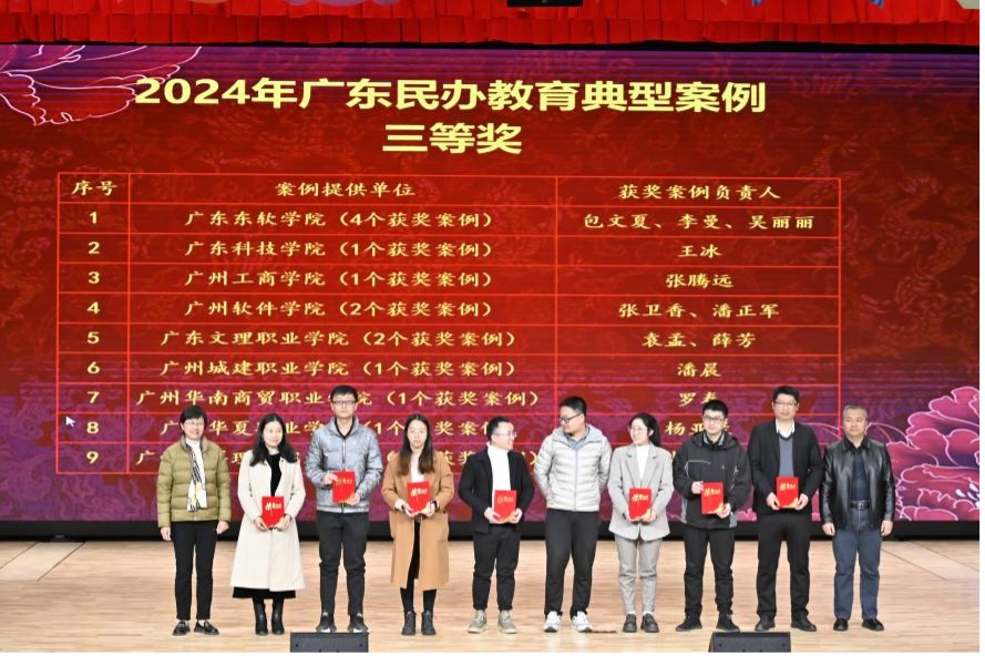 联盟副主席、珠海科技学院副校长程春梅公布2024年度典型案例获奖名单。出席会议的领导为2024年度广东民办教育典型案例获奖人员颁发证书。