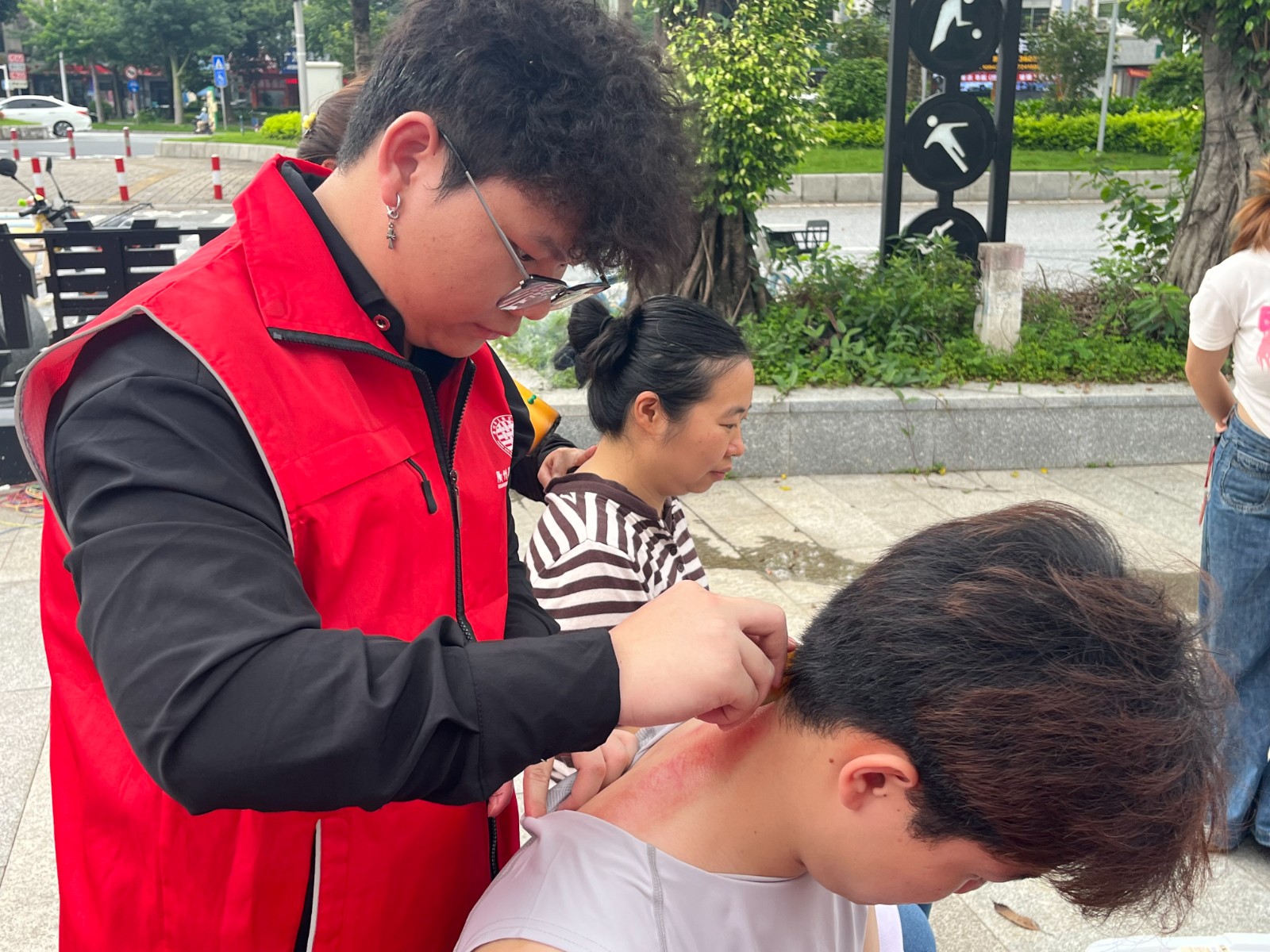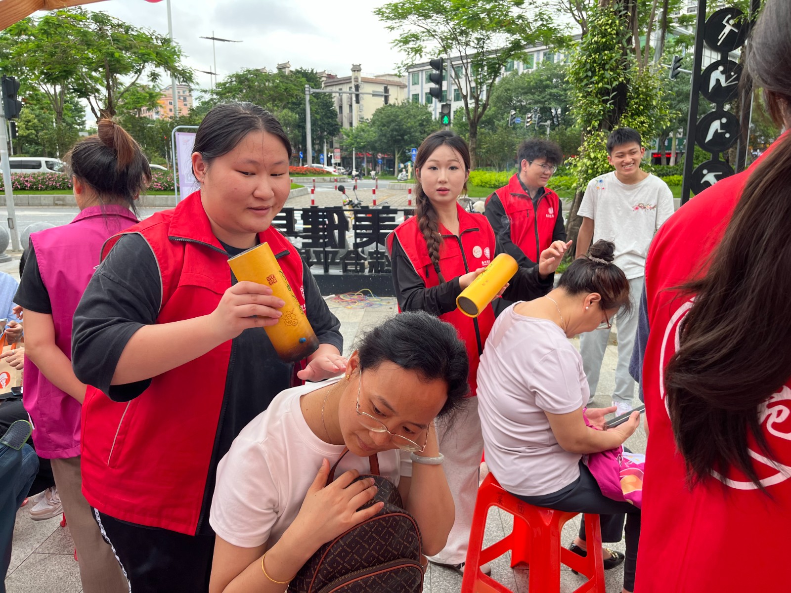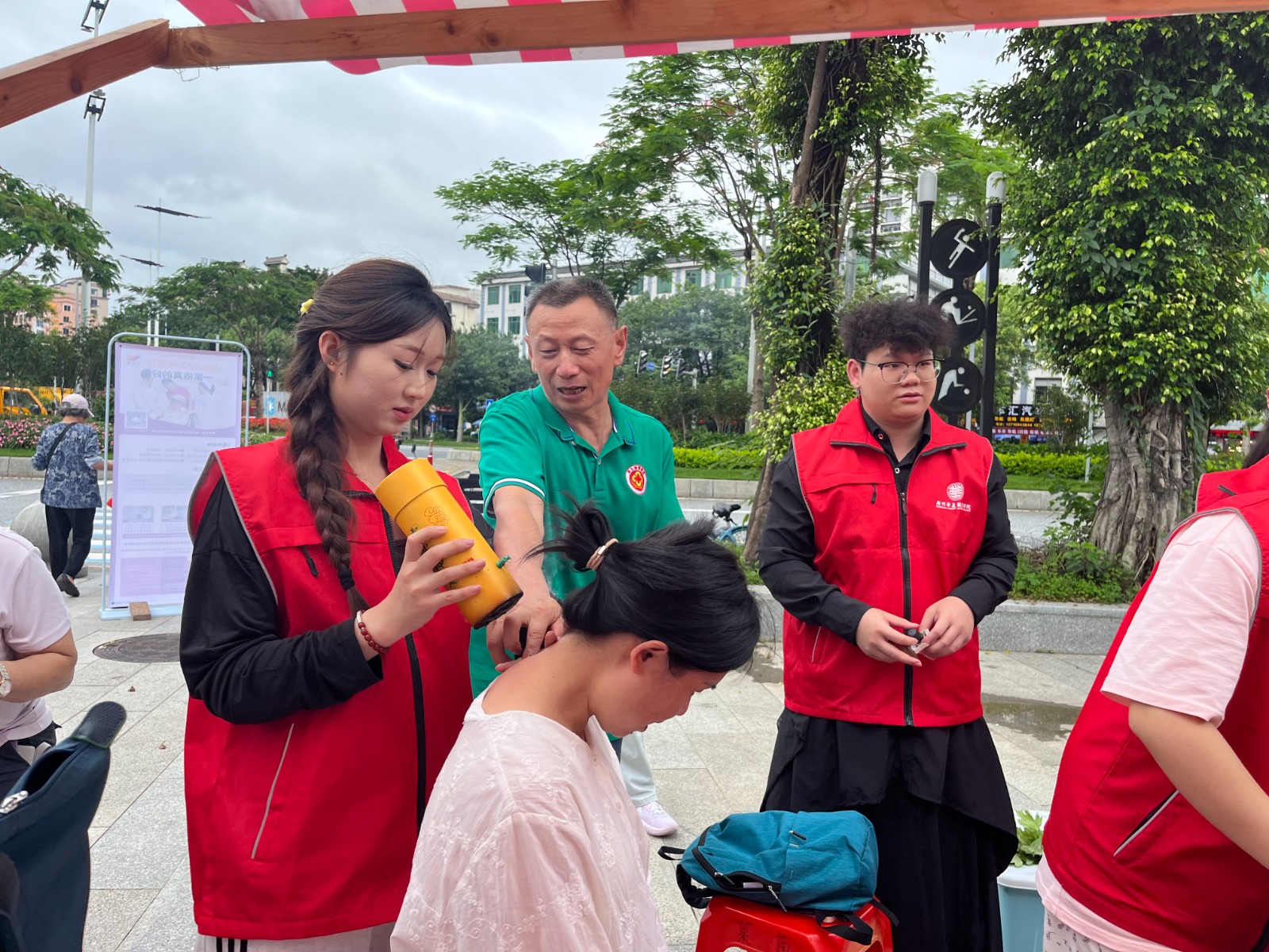 在全民科普宣传活动现场,我校中医药文化展区吸引了众多市民驻足体验。展位围绕中医传统疗法设置体验项目,包括艾灸、艾草泡脚、刘氏火熨术、经络按摩等,集展示、互动、体验于一体,吸引了大批市民踊跃参与。科普教师与志愿者热情讲解技法原理与适应功效,帮助群众深入了解中医药健康知识,现场气氛热烈。特别是刘氏火熨术展示,不仅为市民缓解肩颈不适,也让传统技艺在科普场景中“活起来”“热起来”。现场还贴心赠送艾草及艾绒泡脚包,进一步提升群众的获得感和参与度。